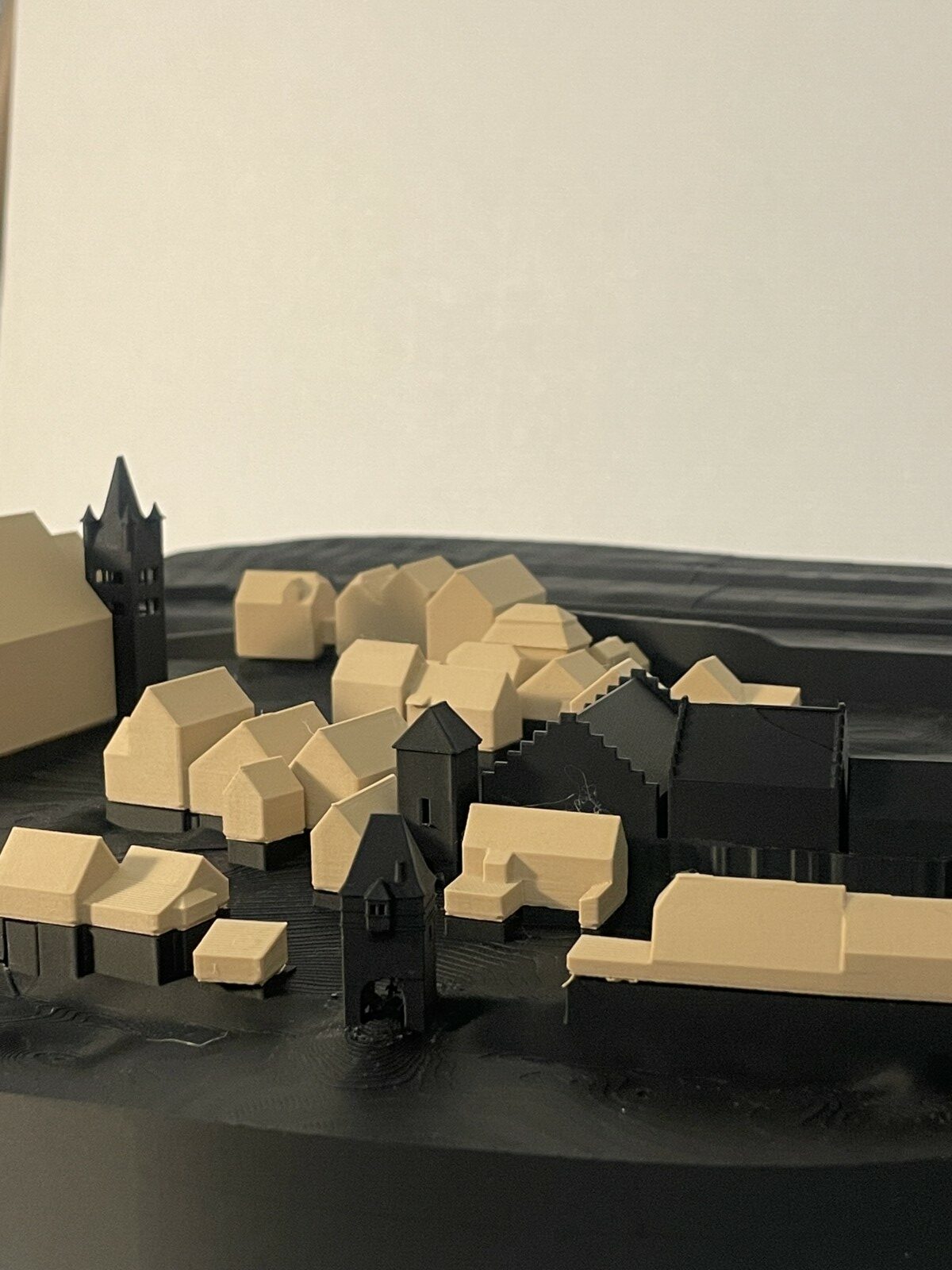 Pour le jardin archéologique de Châtenois, nous souhaitions présenter une maquette à partir d’un scann 3D de Archéologie Alsace. La maquette ici reproduite en 3D a été dessinée par Atelier-Aile2 et imprimée pour permettre la réalisation d’un prototype à l’échelle en PLA avant sa réalisation définitive en bronze et en aluminium coulé.