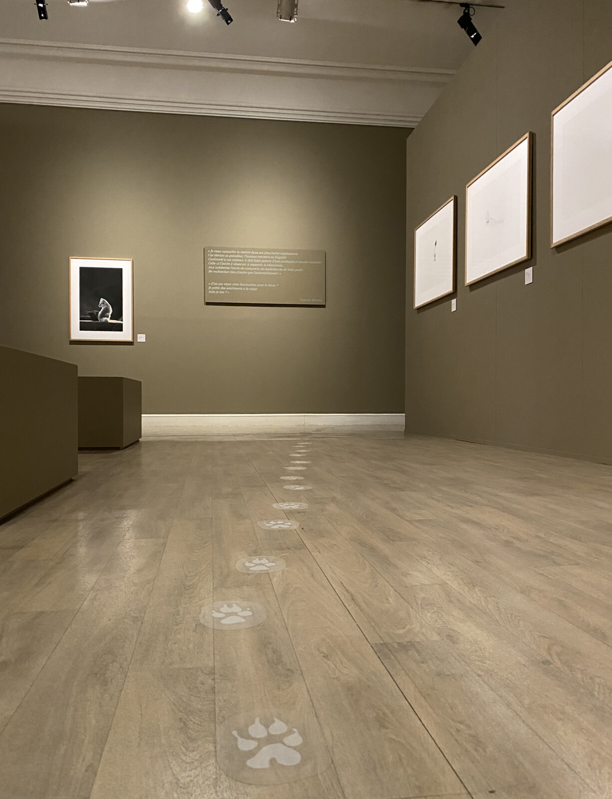 La scénographie et le parcours incitent le visiteur à ralentir. Lumière tamisée, accrochage sobre aux couleurs douces, sons lointains d’animaux : tout est mis en œuvre pour transformer la visite en une expérience sensible de contemplation. Le musée devient une sorte de refuge où le temps semble se suspendre, et où chaque image impose sa propre temporalité dans un espace de méditation visuelle.