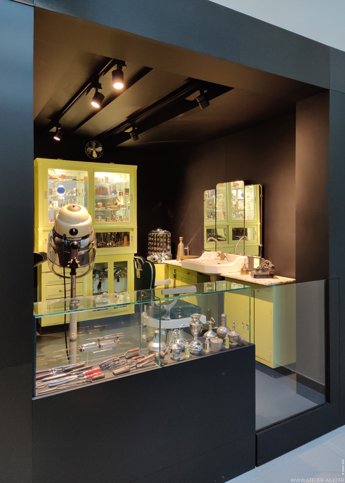 Le parcours de la vie quotidienne des mineurs ouvre ainsi une parenthèse dans les années 50 incarnées, par le mobilier et les ciseaux, les rasoirs, les sèche-cheveux et autres accessoires du coiffeur.