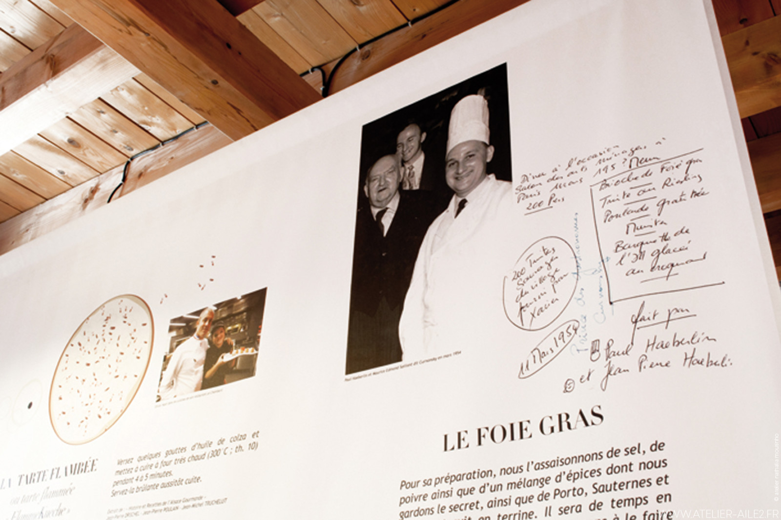À travers trois plats incontournables de la table alsacienne, la choucroute, le foie gras et la flammekueche, l’exposition temporaire présente l’évolution de la gastronomie alsacienne depuis le début du XXe siècle à nos jours.
