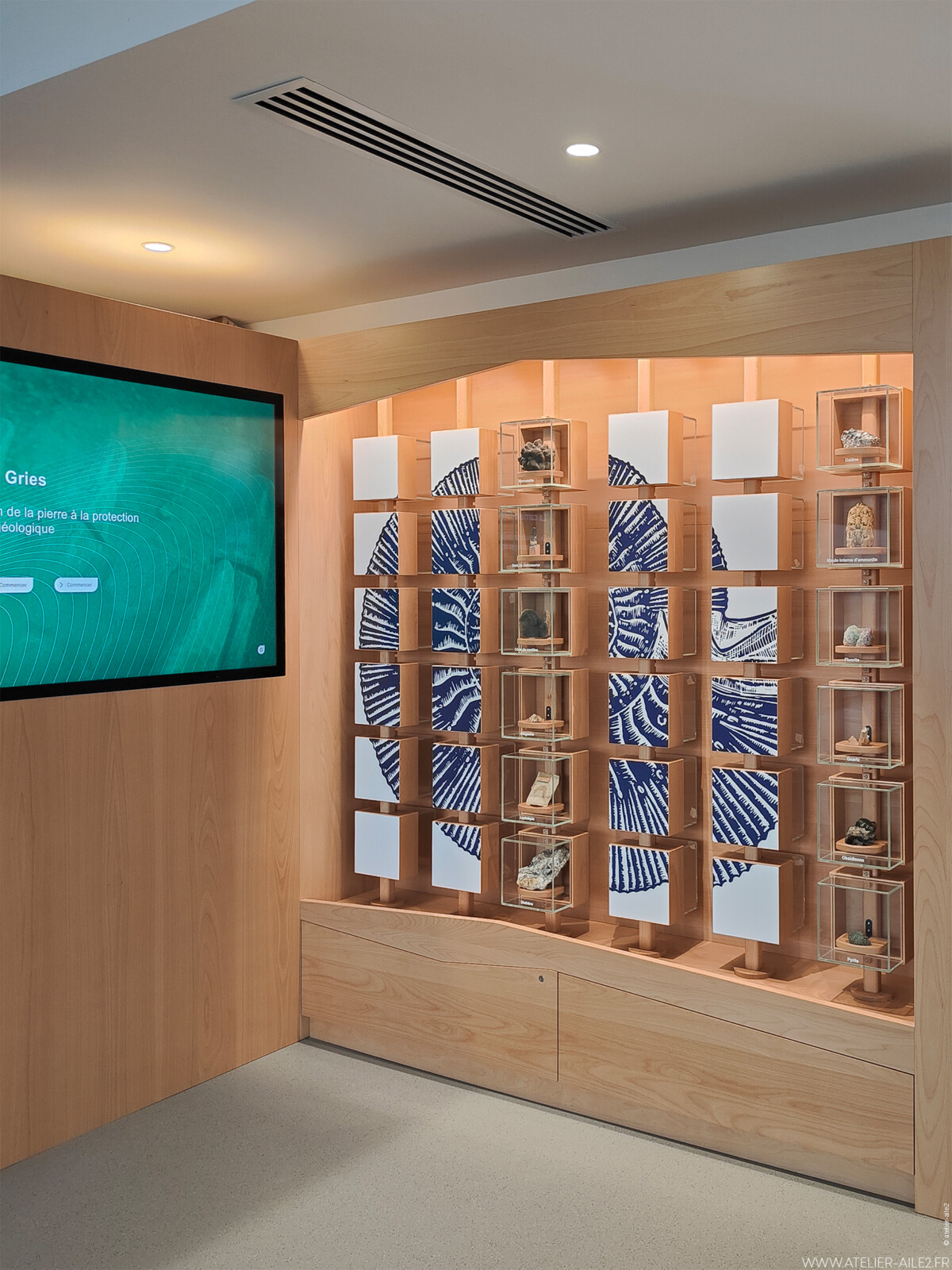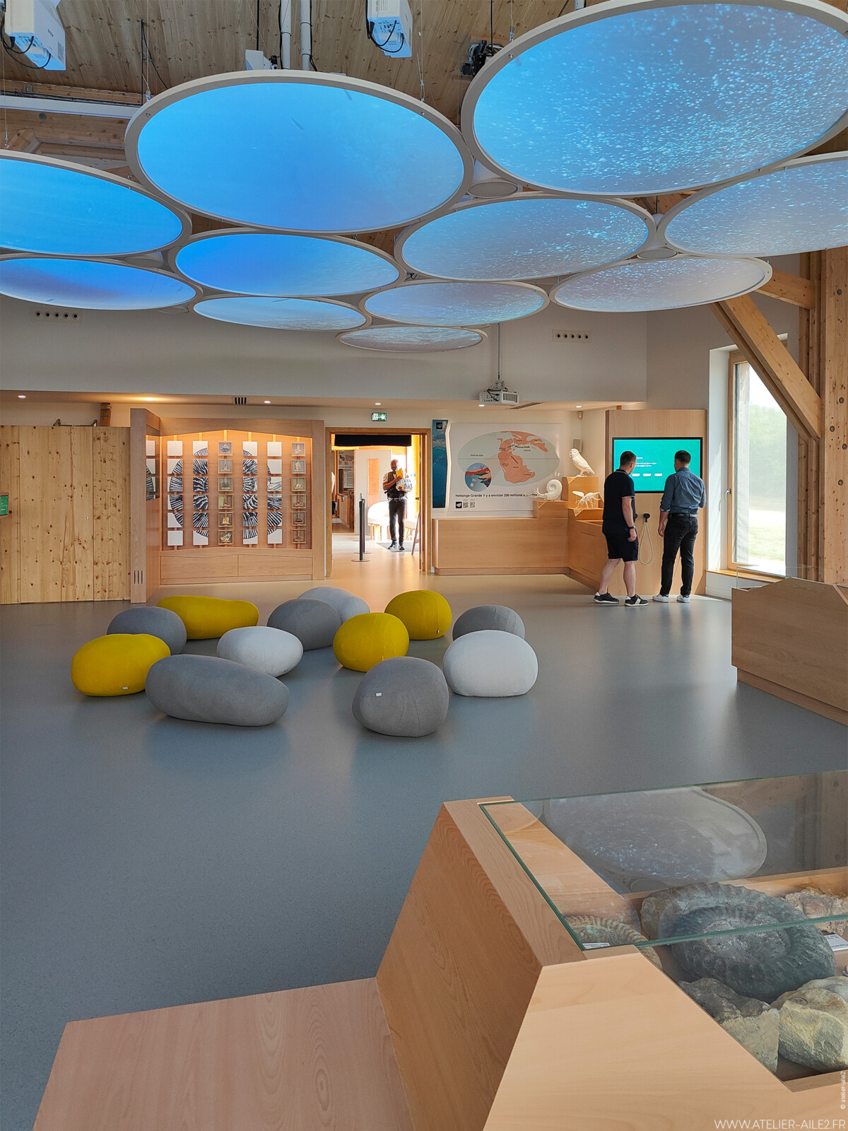 Plus de 560 m2 d’espace muséographique et d’accueil du public font désormais face aux 6 hectares de la Réserve naturelle nationale d’Hettange-Grande. À l’intérieur, en plus de l’office de tourisme, la scénographie propose un parcours à travers plusieurs salles, dont un musée évolutif mettant tour à tour à l’honneur la géologie, la faune et la flore ou l’environnement. Grâce à des systèmes scénographiques de vitrine rotative, de jeux de panneaux graphiques et de supports numériques, le visiteur, dans une même scénographie découvre des contenus et des objets de collection différents pour chaque thème. Chaque thématique fait l’objet d’une rotation dans le calendrier.