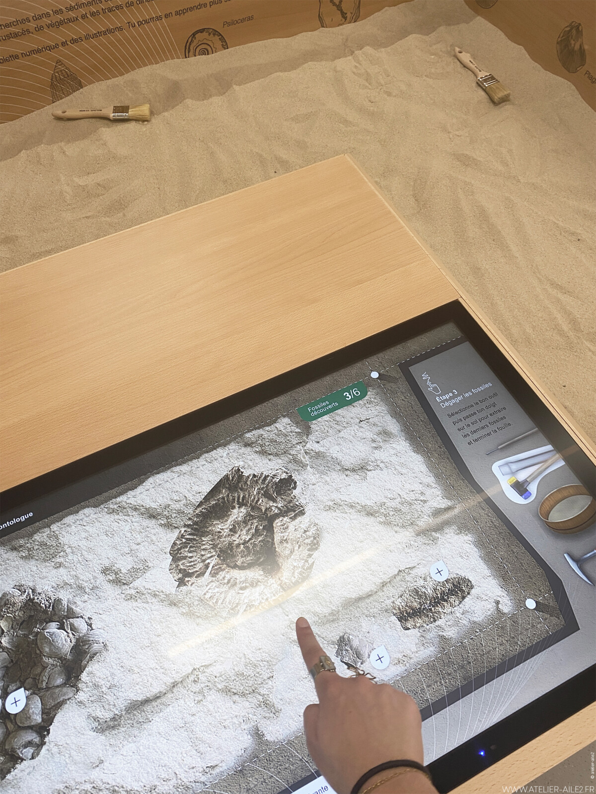 Une salle d’activités invite à manipuler le sable, observer au microscope ou explorer par le toucher. Enfin, une bibliothèque accueille des ouvrages spécialisés.